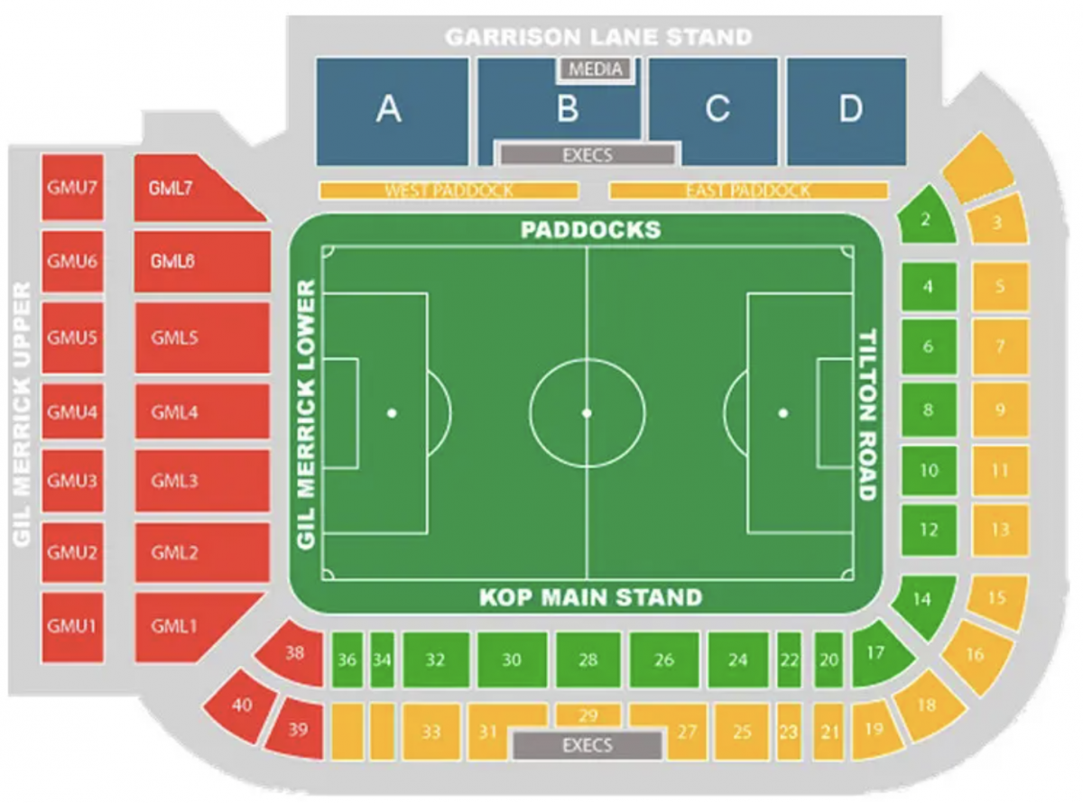 Durante il processo di prenotazione, le posizioni dei posti sono evidenziate sulla mappa dello stadio. Verrai sistemato in queste aree indicate. Se quei posti specifici non fossero più disponibili, riceverai un posto migliorato senza costi aggiuntivi.