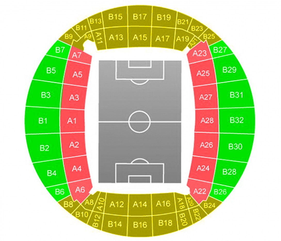 Durante il processo di prenotazione, le posizioni dei posti sono evidenziate sulla mappa dello stadio. Verrai sistemato in queste aree indicate. Se quei posti specifici non fossero più disponibili, riceverai un posto migliorato senza costi aggiuntivi.